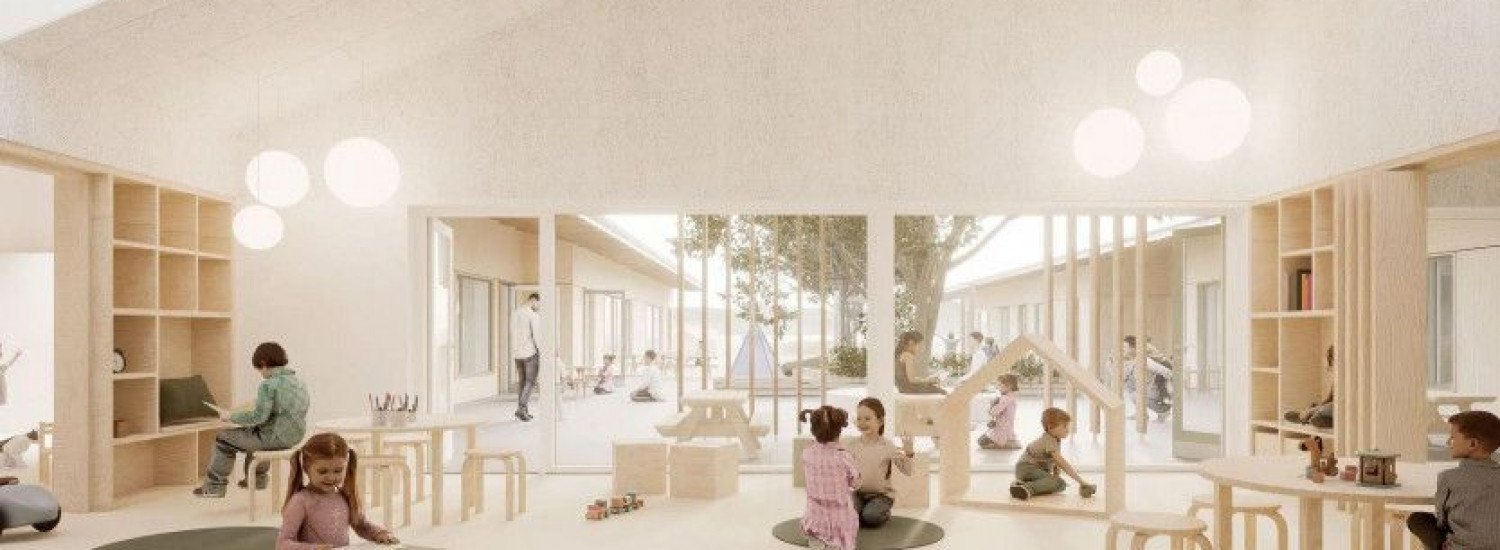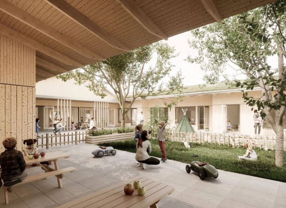 Børnehuset er opført primært i træ, og projektet har haft stort fokus på bæredygtighed. Materialer, funktioner og fleksible rumplaner skaber lyse, indbydende og fremtidssikrede rammer for børn og personale. Byggeriet er DGNB-certificeret med guld, hvilket vidner om høje standarder inden for miljø og bygningsteknologi.