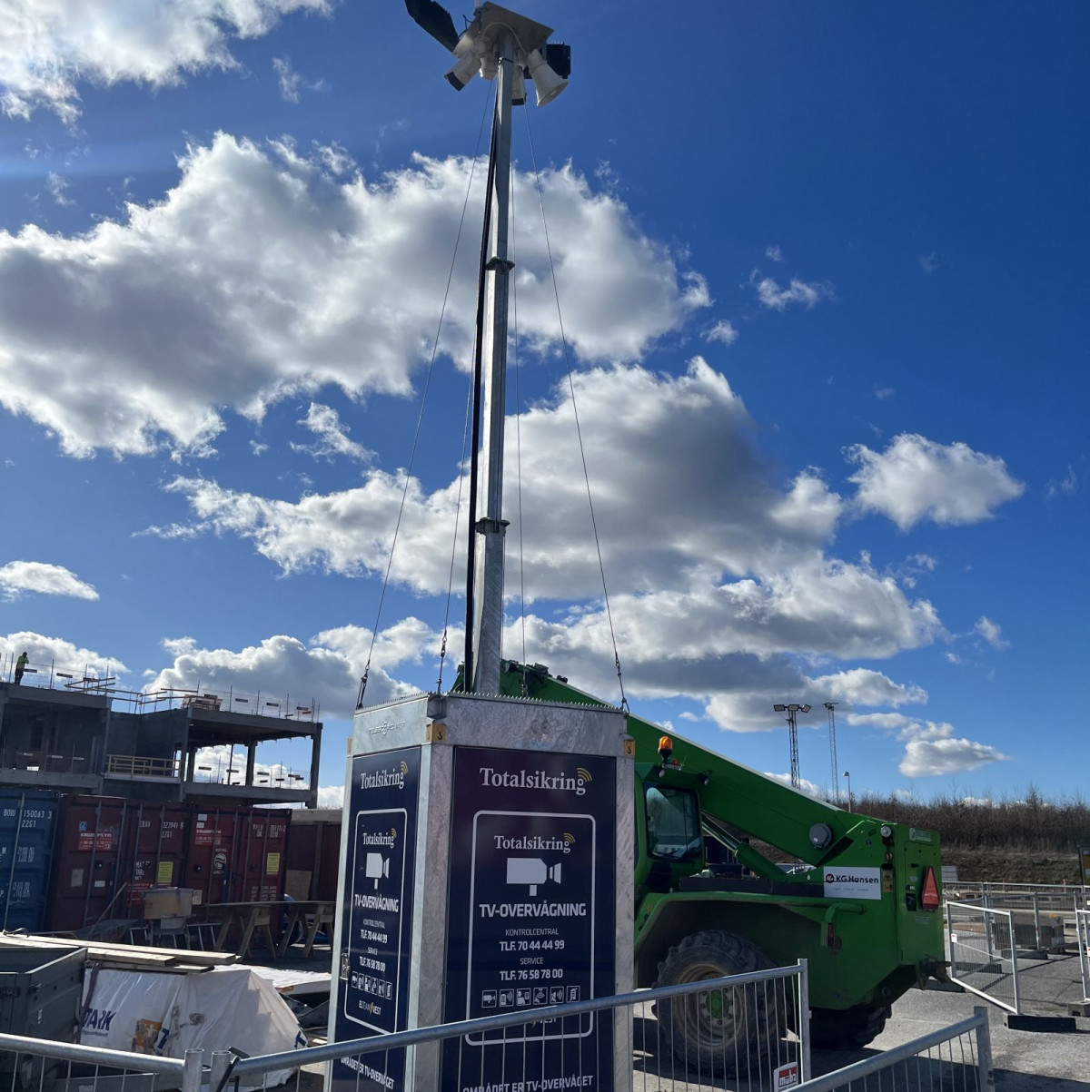 Totalsikring har leveret fire mobilmaster til K.G. Hansen og Sønner A/S, der er en entreprenørvirksomhed, som bygger alt fra store kontorbygninger til rækkehuse.